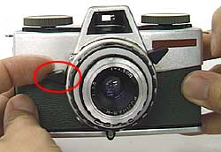 Then, release it with the lens-right lever (in the red circle) by pulling it down.