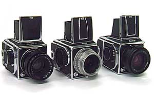 The earlier model of it was on the market under the name of "Salute", and through the several models, it is now called "Kiev 88 TTL".The fig. left: Salute, center: Hasselblad 1000F, right: Kiev 88 TTL