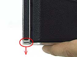 Loading the film Pull down the lever on the camera side bottom to open the rear cover.