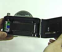 When the film is loaded, close the rear cover.