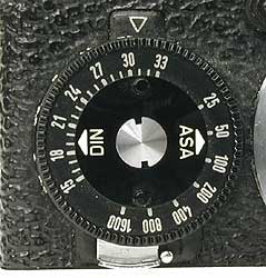 The film speed setting dial is the one (with "ASA" and "DIN" are inprinted) in the center of the ASA and DIN scale. Turn this dial to set the film speed.