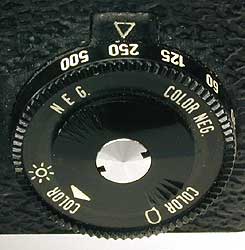 Turn this dial to set shutter speed. (This doesn't have locking device like the aperture lever does.)Focusing on this camera is made by visual distance estimation.