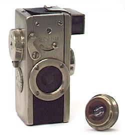The lens is interchangeable by means of screw. Attach it to screw the lens to the camera, and detach it to unscrew it.