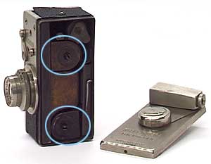 Usage Before loading the film, pull out the hook on top of the left side cover to put off the side cover. Inside it, there are two film cartridges at the each end (in the light-blue circles).