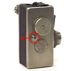 After taking once, move the film wind knob lock button in the direction of the arrow to release the film wind knob for the next exposure.