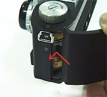 Then, with pressing it tightly to the camera body, turn the lever at the base plate to "LOCK".