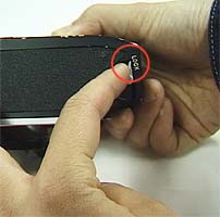 Put the left end of the rear cover on the camera body first, and then put all the rear cover back on the camera body.