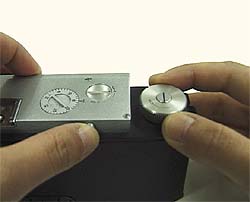 Here, the button at the camera rear-top has to be depressed each time start winding the film with the film wind knob. (Count one frame when the film wind knob stops.)