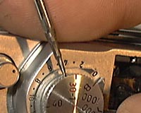 Loose three screws on the side of the shutter dial and take the shutter dial off from the camera body.