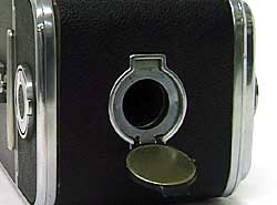 フィルム感度メモリ用のスケールのついているドアを開くと先ほど入れたフィルムのリーダーペーパーを見ることができます。