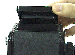 ファインダーフードの蓋を持ち上げると、自動的にファインダーフードが開き立てられます。