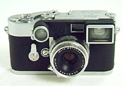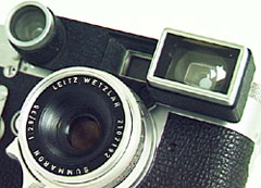 0.91倍という究極の高倍率ファインダーは、対応するレンズの焦点距離は50mm以上となります。それ以下の広角レンズを使用する場合は、写真のような「メガネ」等と呼ばれるファインダーエレメントを装着するか、外付けのファインダーが必要となります。 M型の中で広角レンズに不向きなM3の使用はこれで解決。