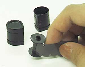 フィルムマガジンを取り出し、スプールにフィルムをしっかり巻き付けます。