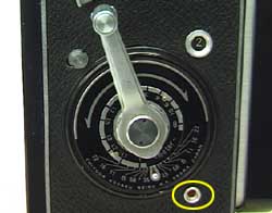 フィルムを巻き上げないとシャッターがきれないようになっているので(二重露出防止)、一度撮影したら巻き上げクランクでフィルムを巻き上げ、撮影していきます。巻き上げクランクの下の窓に赤い表示が出れば、撮影可能です。