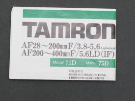タムロンAF28〜200mmF/3.8-5.6 AF200〜400mmF/5.6LD(IF)取扱説明書